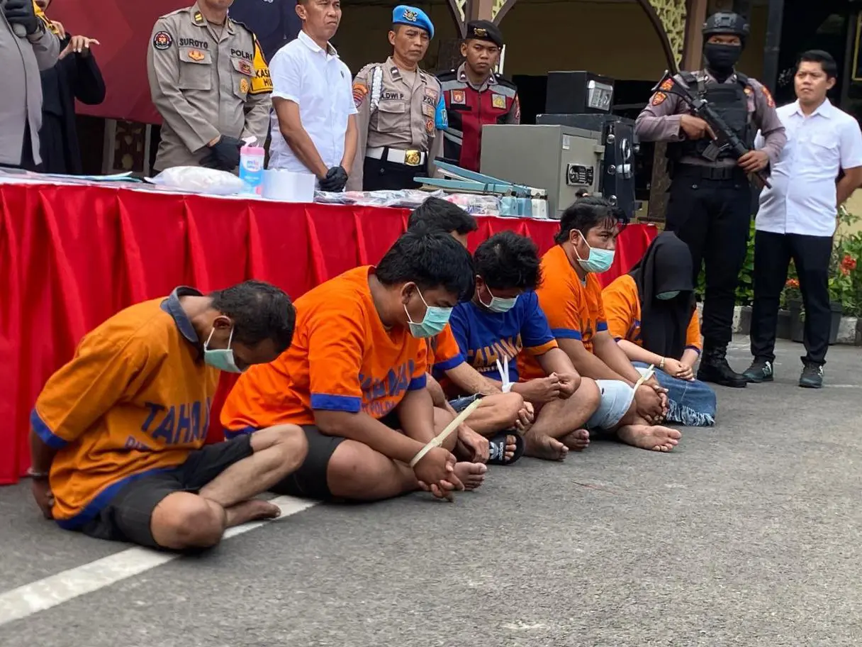 Dari operasi di Jalan Kunti tersebut, polisi mengamanakan 4 buah mesin pres, 3 timbangan, 1 handphone, 1 bel, 3 skrup, 7 buah catatan penjualan, 19 bandel plastik klip kecil, 10 buah plastik klip besar, dan 1 bandel klip besar.