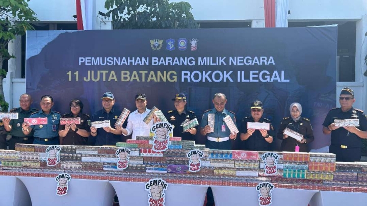 KATA MEREKA: SURABAYA, Pemerintah Kota (Pemkot) Surabaya menunjukkan komitmen kuat dalam memberantas peredaran rokok ilegal yang merugikan negara. Pada Rabu (20/8), di halaman Balai Kota Surabaya, Wali Kota Eri Cahyadi secara simbolis memimpin pemusnahan jutaan batang rokok ilegal yang berhasil disita. Total rokok ilegal yang dimusnahkan mencapai lebih dari 11 juta batang dengan nilai kerugian negara yang diperkirakan mencapai Rp16,6 miliar.