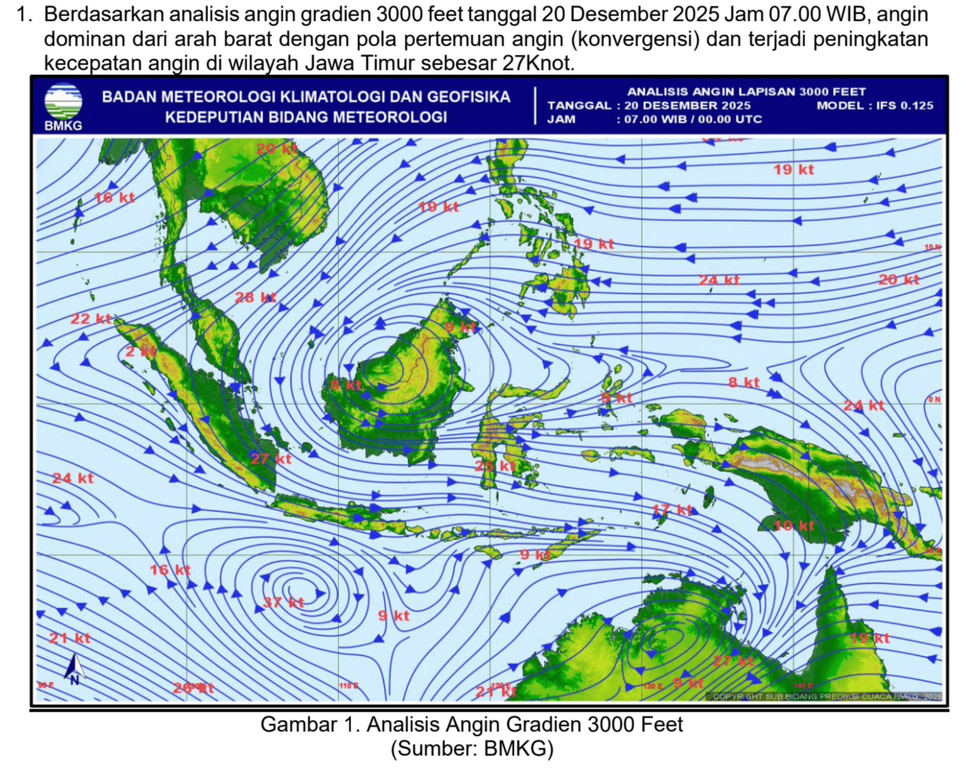 Selain curah hujan yang meningkat, kondisi suhu muka laut di perairan Selat Madura yang masih cukup hangat serta atmosfer lokal yang labil turut mendukung pertumbuhan awan konvektif. Dampaknya, hujan lebat berpotensi disertai petir dan angin kencang, serta peningkatan ketinggian gelombang di perairan Jawa Timur.