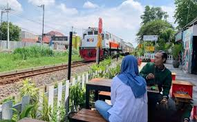 Tempat ini punya tema perkeretaapian yang kental, dengan dekorasi seperti palang pintu perlintasan dan mainan kereta api lawas, bikin suasana makin asyik. Banyak pengunjung, dari railfans, mahasiswa, pekerja, sampai keluarga, datang ke sini untuk menikmati kereta yang lewat sambil santai.